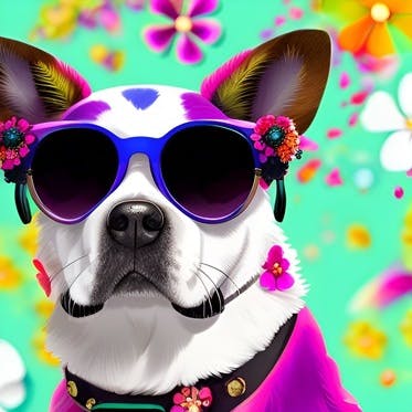 みなさん、こんにちは。chihiro Design の千広です。本日のConnect Art は色鮮やかなワンちゃんの登場!ダンディーな雰囲気漂うサングラスに暖色系の花々が良いアクセントになってますね。