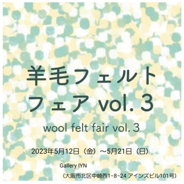 いつも応援いただきましてありがとうございます!羊毛フェルトフェアVol.3のご案内をいたします。Gallery IYNさんで開催される羊毛フェルト限定のディスプレイケースのレンタルサービスです。たくさんの羊毛フェルト作家さんの作品が集まるので作家さんの個性が見られて楽しいフェアになると思います...