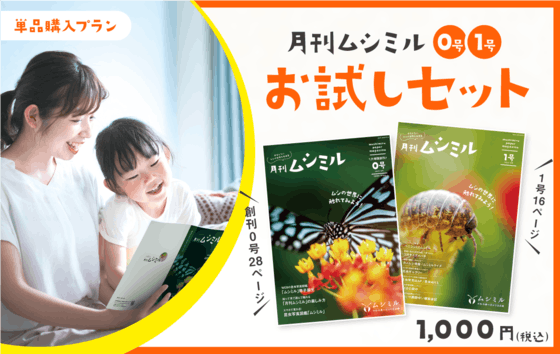 お試しセットの単品購入/月刊ムシミル(創刊0号と1号セット)・お試しなので、送料込みでのお得な金額にしています。・実物の冊子を確認してみたい方用です。・1月2月キャンペーン中で、冊子が追加でついてきますので、メンバー特典から申し込まれたほうがお得です。印刷は信頼できる印刷会社様に発注し、本文ペ...