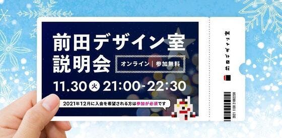 前田デザイン室を「お気に入り」に登録していただいているみなさまへ。前田デザイン室運営チームの浜田です。今月も説明会を行います。今日の21時からです。入会を希望される方は、ご参加お待ちしております。ただ、説明会に参加した=入会しないといけないというわけではないので、お気軽にどうぞ。コメント・ガヤ...