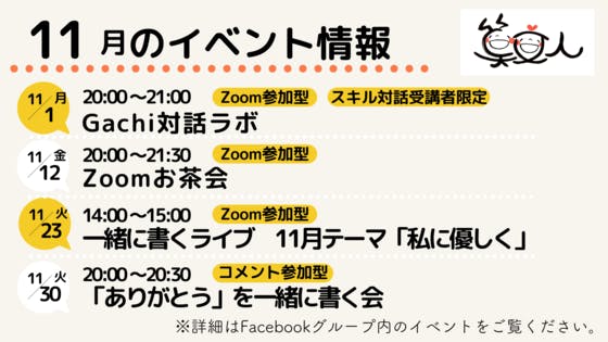 笑文人 11月のイベントスケジュールを公開しますみなさまこんにちは。笑文人(わもじん)運営事務局です。さっそくですが、11月のイベントスケジュールができました。・11月1日(月) 20:00~21:00 Gachi対話ラボ ※参加方法はこちらから・11月12日(金) 20:00~21:30 Z...