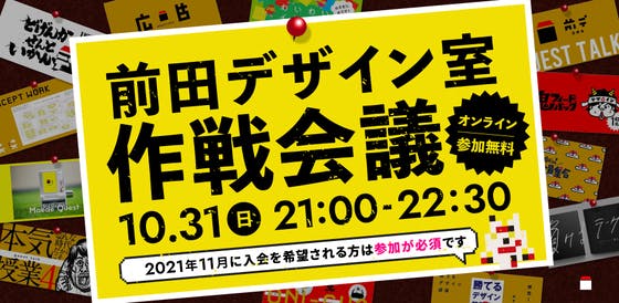 前田デザイン室を「お気に入り」に登録していただいているみなさまへ。前田デザイン室運営チームの浜田です。前田デザイン室に入会を希望される方には、事前に説明会を受けていただくことになっています。今月は作戦会議と名称を変更し、本日10/31(日)21時からの開催です。作戦会議では以下の内容をお話しし...