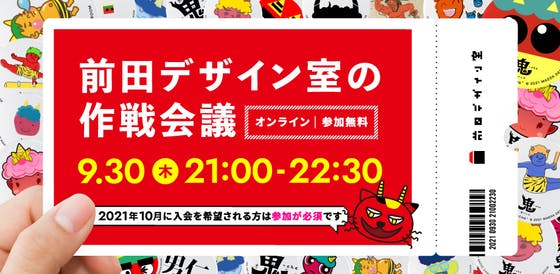 前田デザイン室を「お気に入り」に登録していただいているみなさまへ。前田デザイン室運営チームのいちろーです。前田デザイン室に入会を希望される方には、事前に説明会を受けていただくことになっています。今月は作戦会議と名称を変更し、9/30(木)21時からの開催です。作戦会議では以下の内容をお話ししま...