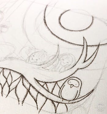 9月リターンを制作中です。3000円のリターンの絵のペン入れ開始しましたー!森のかなの風景。森の中ですが、一人一人少しづつ違うデザインになっています♪出来上がりを楽しみにしててくださいね♪
