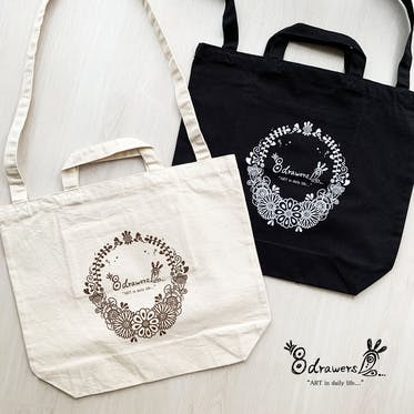 こんばんは☆ミ個展告知の際にちらっとお知らせを致しておりましたが個展にて、税込み11000円以上ご購入の方へプレゼントするビッグエコバッグのデザインが決定致しました!!ひとつひとつ私がシルクスクリーンにて手刷りしてますので、30点限定です!(カラーは生成りと黒の2色でそれぞれ15点ずつです(*...