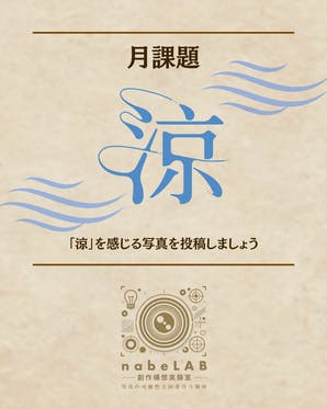 こんにちは!nabeLAB広報担当のちーぷんぷんです( ・˂̵˃̶・)今回は月課題に取り組んでくれたメンバーさんのビフォーアフターを紹介します!月課題「涼」、自分が感じる「涼」の写真を投稿してもらいました。とても「涼」を感じる一枚ですよね。またテーブルの木目が不思議と水面に見えるのが面白い!こ...