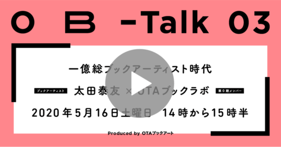 OTAブックアートのオンライン・トークイベント「OB-Talk」第 3 回の収録映像を、note に投稿しました。2020 年 5 月 16 日(土)に開催された、OB Talk 03 「一億総ブックアーティスト時代」のオンライン配信を収録・編集した動画を製作しました。 当日、ご覧になれなかっ...