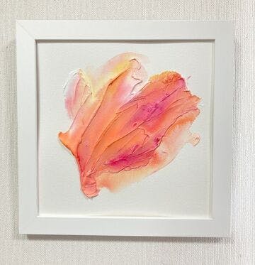 白いアルシュ紙640gにペーストをぶちまけペンティングナイフで自分の羽が生えたように大胆なタッチで描きました。乾燥後、いつでも飛び立てる色を付けました。オリジナル一点物台紙はアルシュ紙640gモデリングペースト使用色はガッシュ絵具を使いました。額サイズ:34㎝×34㎝×厚み2㎝消費税、額代、送...
