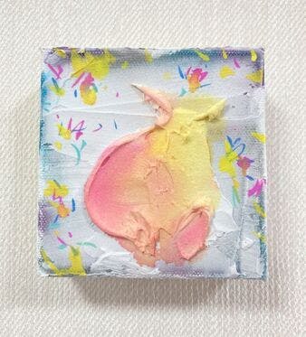 何に見えますか?ミニキャンバスにペーストを伸ばしていたら何かに見えた。壁にピンで止めたり、置いたりできます。オリジナル一点物ミニキャンバス 10㎝×10㎝×厚み3.5㎝モデリングペーストを使用ガッシュ絵具で彩色消費税、送料込みの価格です。