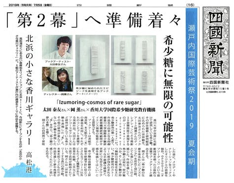 瀬戸内国際芸術祭 2019 に、ブックアーティスト太田泰友が出展している作品「Izumoring—cosmos of rare sugar」に関する記事が、2019年7月5日(金)の四国新聞に掲載されました。夏会期は8月25日で終了しましたが、こちらの作品は9月からの秋会期にも引き続きご覧いた...
