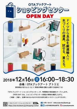 「 OTAブックアート ショッピングセンター OPEN DAY」開催!ドイツから厳選輸入した本づくりの道具を、試せる、買える。「OTAブックアート ショッピングセンター」が、時間限定の実店舗をオープンします!OPEN DAYでは、ショッピングセンターの商品の実物を確認しながら、ご相談・ご購入、...