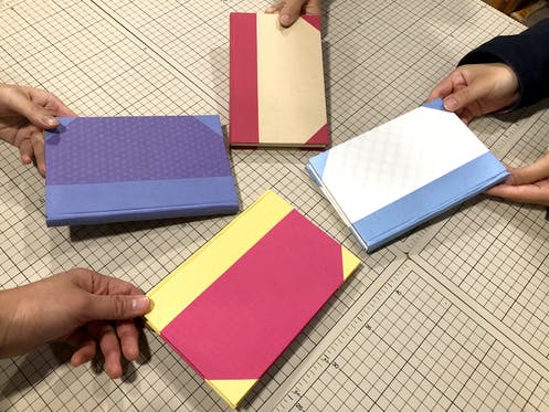 こんにちは、OTAブックアートのスタッフKです!2018年11月18日、「ヨンネ手製本講座 at OTA ブックアート」和本編・洋本編の第6回を実施しました。講師として植村愛音さんをお迎えして、毎回異なる課題に挑戦し代表的な製本の方法を習得してきたこのワークショップも、いよいよ最終回!午前の和...
