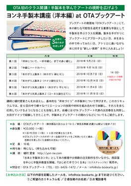 2018年8月4日(土)OTAブックアートのアトリエにて「ヨンネ手製本講座(1 Day) at OTAブックアート」を開催。講師に植村愛音さんをお迎えし、糸かがりの「角背上製本」の手製本を学びました! OTAブックアートで初開催となるワークショップ。アトリエには、参加者の皆様に本物の製本体験...