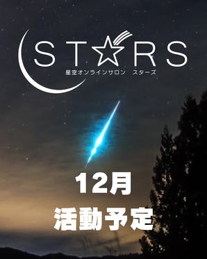 12月のオンラインサロン「スターズ」活動予定12月は、ふたご座流星群や水星の西方最大離角、プレヤデス星団の食など、見どころいっぱいの星空が待っています!一緒に星や写真を楽しみましょう^^/◎12月4日(木)20:00〜21:00 オンライン講座(アドバンスドプラン限定) 「画像編集をしてみよう...