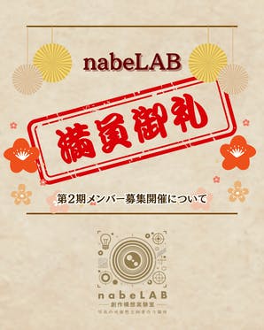 みなさま、こんにちわ。広報担当のちーぷんぷんです。今日は嬉しいご報告があります!!nabeLABが募集人数40名に達しまして…満員御礼となりました( ´ ▽ ` )ノ継続して入ってくださってるLABメンの皆様冬から新たに入会してくださった皆様ありがとうございます✧・゚「1月から入ろうと思ってい...