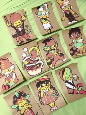 この度原宿のデザインフェスタギャラリー WEST1-Cにおいて2/11(土)限定、 人生初の展示を行います。 バレンタインが近いので、チョコレートやお菓子のポップなモンスターのイラストを並べる予定です。 画像はチョコミント君とバニラチョコアイスちゃんです。 こんな感じのタッチのイラス...
