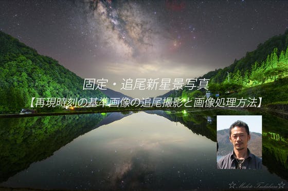 中級者以上向け「マンツーマンで学ぶ新星景写真の撮影、編集ノウハウ」や「Photoshopによる画像処理実演」だけではお伝えしきれない内容を詳しくレクチャー。こんな方を対象としています・固定・追尾新星景の風景漏れ隠しに悩んでいる方・追尾での基準画像の撮影方法がよく分からない方固定、追尾の新星景写...