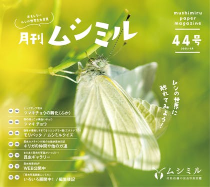 メンバー限定ダウンロード2025年4月(44号)PDFのダウンロードはこちらから → 月刊ムシミル44号(配信終了)目次・写真作品:ツマキチョウの孵化(ふか)・昆虫図鑑:ツマキチョウ・モリバッタ/ムシミルクイズ・昆虫カメラマン村松のお散歩昆虫日記:春キリガ探し・昆虫ギャラリー・編集後記、他表紙...
