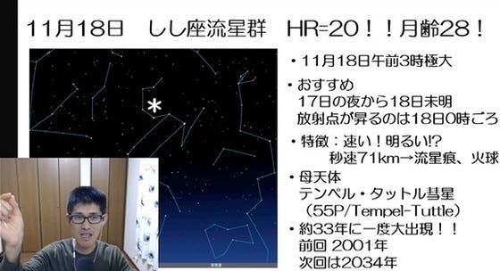 11月10日のスターズメンバー限定「ライブ配信」にご参加くださった皆さま、本当にありがとうございました!!11月は、しし座流星群や土星の環など、気になる天文現象が盛りだくさん☆さらに12月には、毎年多くの流れ星が見られるふたご座流星群も、今年は比較的良い条件で観察できます!寒さが増してくる時期...