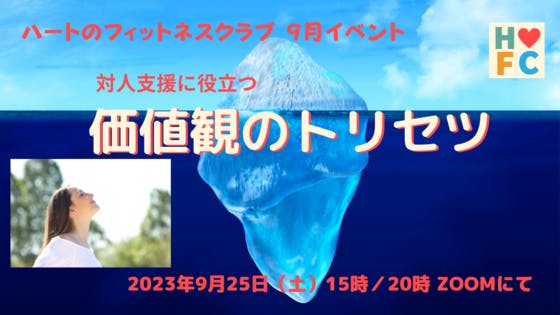 HFC9月の定例イベントは「対人支援に役立つ 価値観のトリセツ」です。(1)自分にとって大切な人に情報を伝えたり役立つアドバイスを提供したりしようとしても、受け入れてもらえない。(2)自分の行動を変えたいと思っても、思うように行動できない。どちらのケースでも、実は「価値観」の取り扱い方がポイン...