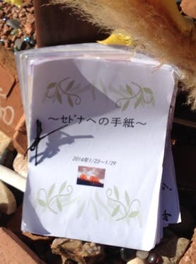 「山」と聞けば「川」と答えるかのように、「セドナへの手紙」とくれば「セドナからのハガキ」なんでございます。私は「セドナへの手紙」をお預かりしたとき、これは預けてくださった方に対して、証拠じゃないけれど、きちんと読んでお願いしてきましたよ、という印を差し上げたいなと思ったのです。それで考えたのが...