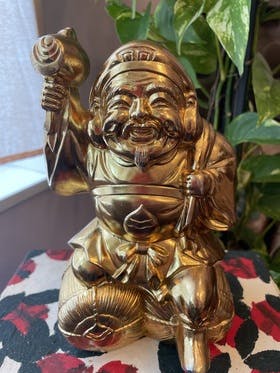 旧あまき堂には、いろいろなものが陳列されていました。どれも縁起のいいものばかり!それを手に、記念撮影される方も多かったんですよ。その中のひとつをご紹介しますね。それは大黒様。これを抱いて写真を撮ると、金運が上がる、良いことがある、厄除けになると。この大黒様をいただいたのは、今から27年ほど前の...