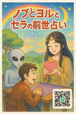 「コミュニティ参加」で前世占い希望者には基本、現世と関係深い1前世をお伝えします占い師の私(ノブ)は「媒介者」ヨル6密度のプレアデス星人セラ7密度の月アルクトゥルス星人による前世占い私の前世(簡易版)は、以下の通り①9D月(ルナ)光の観察者想念体・創造の起源②8Dレムリア初期音の巫女(セラと共...