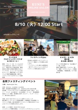毎月開催のスポットイベント!第4回合同ファスティングを開催します。日時:8/10(火) 12:00PM〜14:00PM場所:東京都中央区銀座1-13-8 HEMP by SKY GREEN1階条件:kuni's Online Salon 会員、今後入会を検討している方参加費:現地参加の方31...