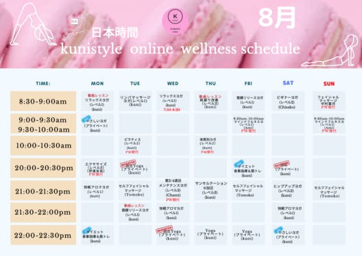 8月のライブレッスンスケジュールをお知らせします。・プラチナ/ダイヤモンド 5日・15日・30日 月3回zoomライブレッスン参加可能スケジュールを見ていただき、kuniと書かれている「飯田くにこ」レッスンに参加することが可能です。希望者には参加可能なIDとPWを発行します。ヨガレッスンメイ...