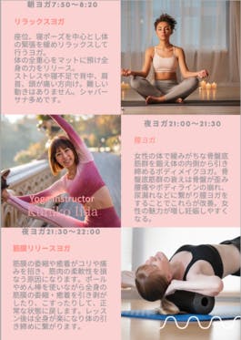 通常行っている飯田クラスのライブヨガレッスンに参加できます。ZOOMにて直接指導。試聴動画ではないのでポーズチェックなどもあります。朝ヨガ 7:50〜8:20 リラックスヨガ夜ヨガ 21:00〜21:30 膣ヨガ夜ヨガ 21:30〜21:30 筋膜リリースヨガ参加希望者にはID/PWを発行して...