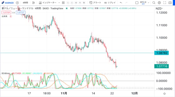 本日のRBNZは市場予想通り0.75%の利上げとなりました。次回は2月になります。明日から感謝祭で、特に金曜は1年で最も動かなくなります(クリスマスよりも動かない)。手仕舞い売りも今日明日で出てくるように思えます。NZは9-11月が強く、このあたりを境に12月は上昇率で例年豪ドルに負けているイ...