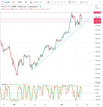 ちょっと急落しそうです。ドル円の値動きがおかしいです。個人的に怖くなってきました。ローソク足千本ノック通りですと、141.50円割れると盛大に走ると予想します。仮に米PPIだけはなぜか市場予想を下回るなどした場合、141.50を一気に下抜けそうです。この1週間以上高値でポジったドル円は全滅する...