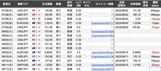 今晩は、サロン事務局です。先ほど「ひろぴートレード履歴表」を更新しました。また同時に「トレード履歴チャート(ドル円)」も更新していますので、それぞれご参考にしていただけましたら幸いです。引き続きひろぴーのトレードサロンをよろしくお願いします。