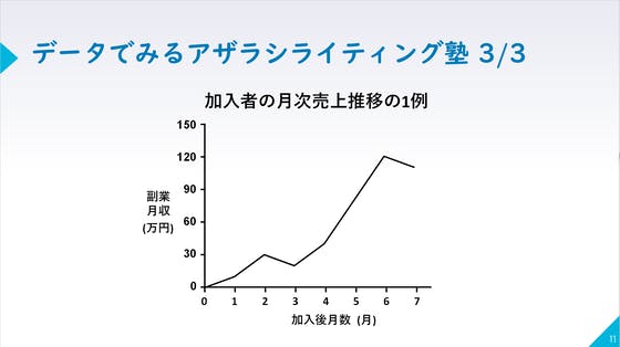 加入者(初心者ライター)の売り上げ推移の1例です。