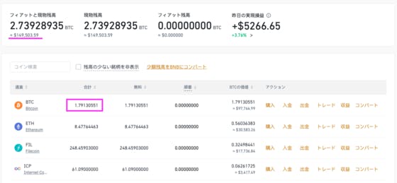 BTCが急騰です。5万ドルを突破し、ストップロスを一気につけにきたようですね。よって、個人的にBTC比率を高めていこうと考えました。添付どおりですが、ポートフォリオの比率はBTCが65%とほぼ2/3をBTCにしました。アルトコインがそこまで上昇しておりません。BTCドミナンスが上昇傾向にあり、...
