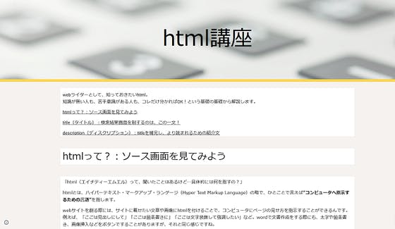 ライターのためのオンラインサロン「らいく」で、新しく「html講座」がSTARTしました。【売れるwebライティングのための必須スキル「html」】をとことん分かりやすく解説!1回目は、以下の超基本的な内容をUPしています。・htmlって?:ソース画面を見てみよう・title(タイトル):検索...