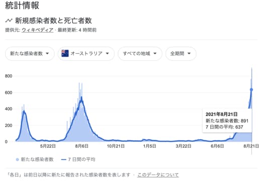 検索すればわかりますが、オーストラリアの新規コロナ感染者は891人と過去最高を更新しております。https://www.cnn.co.jp/world/35175548.html数日前から各都市で政府に対してデモが行われております。市民は9月末までのロックダウンに嫌気がさしているのでしょう。し...