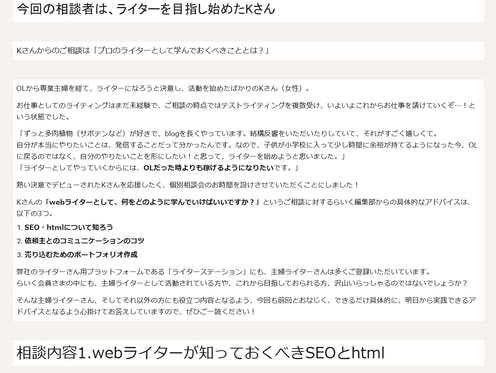 「らいく」会員サイトに個別相談会レポートお2人目・第1回分をUPしました。今回は、学ばなきゃ…と思いつつも「何をどう学べばいいの?」というライターさんも多い、「webライターが知っておくべきSEOとhtml」に関する【今すぐサクッと実践できる】ノウハウをお伝えしています。この個別相談会レポート...