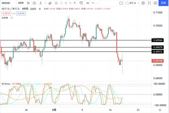 RBNZ先程の続きです。2021年12月の政策金利予想は0.6%とのこと。 つまりRBNZの利上げは年内1回のみが理事メンバーの予想のようです。 これを受けて少し上昇しましたが、現状を考慮してでの対応でしょう。ロックダウンは3日間となり、つまり明日までです。NZ政府はその後、感染具合を考慮して...