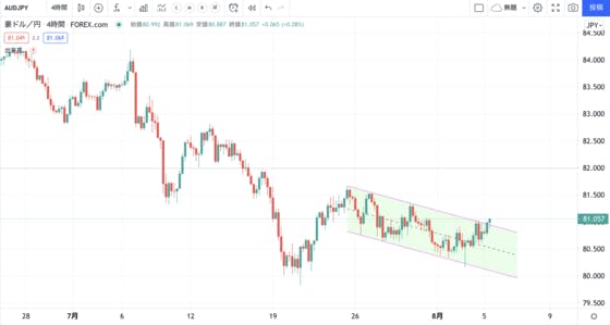 リスクオフのヘッジも兼ねて、8月3日火曜日に配信した豪ドル円指値注文ですが、https://community.camp-fire.jp/projects/400743/activities/294720#main平行チャネルの上限ラインで戻り売り指値注文をセットし、昨日約定しておりました。し...