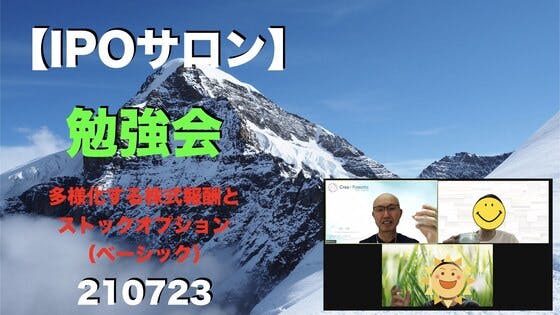 IPOサロンの勉強会を開催しました。テーマは、”多様化する株式報酬とストックオプション(ベーシック)”。元4大監査法人の会計士の方に講師をしていただきました。休みで…オリンピック開会式と被っちゃって参加を少なかったですけど、めっちゃ勉強になりました!やはりすごい!!