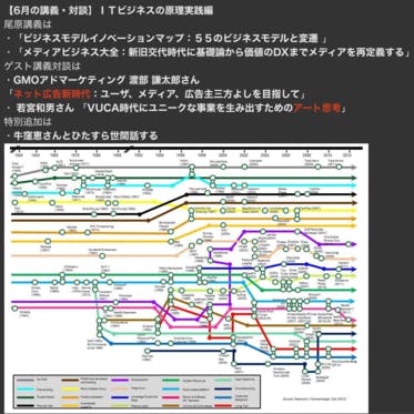 【6月の講義・対談】尾原講義は・「ビジネスモデルイノベーションマップ:55のビジネスモデルと変遷」・「メディアビジネス大全:新旧交代時代に基礎論から価値のDXまでメディアを再定義する」ゲスト講義対談は・GMOアドマーケティング 渡部 謙太郎さん「ネット広告新時代:ユーザ、メディア、広告主三方よ...