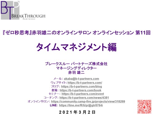今回は、「タイムマネジメント」というテーマでお話ししました。タイムマネジメントができれば、生産性が大きく上がり、ストレスも減ります。仕事とプライベートの両立も図れます。私の一日のタイムマネジメントも共有しながら、一人でも多くの人が快適に仕事にもプライベートにも取り組めるように考え方から具体策ま...