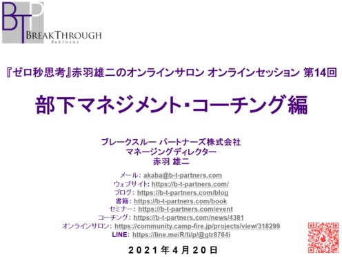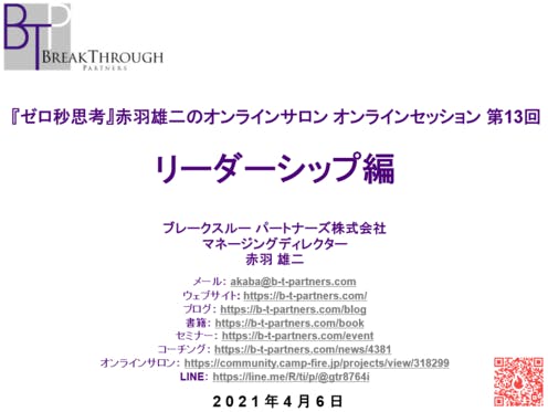 『ゼロ秒思考』赤羽雄二のオンラインサロンでは、大変多くの勉強会(参加無料)が開催されています。最近はほぼ毎日1~3回の開催ですね。比較的少人数での勉強会ですので、新しく参加される方でもすぐに溶け込めます。勉強会は2/12にご紹介しましたが、その後上記のように・愛着障害・リーダーシップ・アクティ...