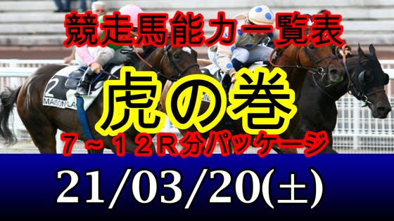 お疲れ様です。3/20(土)の虎の巻です。中央競馬全レース版です。ハーフパッケージ(7~12R)もございますのでお間違いないように。