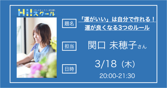コミュニティメンバーの皆様、こんばんは!三月も中盤に差し掛かりましたが、いかがお過ごしでしょうか!?朝と晩で寒暖差があるので、体調に気をつけてお過ごしください!さて今回は四柱推命に関する講座のご案内です!講師は関口未穂子さんです!以下詳細です!【日時】3/18(木) 20:00-21:30【テ...