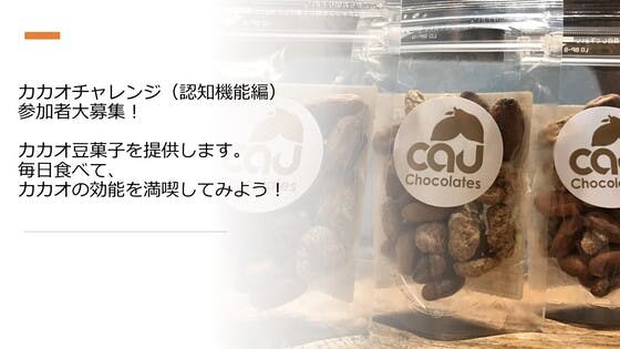 CAUチョコレートジャパンでは、カカオ豆を使用した認知機能向上を目指しています。カカオ豆にはカカオポリフェノールが多く含まれています。今までに存在する研究において、多くの効能がある中、認知機能を向上させるといった研究があり、認知症の予防にも良いと言われています。今回私たちは、カカオの効能をより...