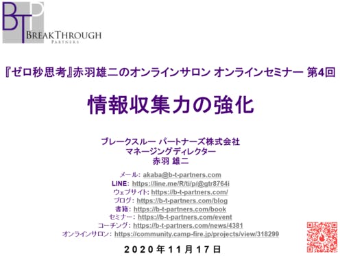 今回は、「情報収集力の強化」について徹底的に解説し、多くのご質問にお答えしました。1. 問題把握・解決に役立つ情報収集 10の秘訣2. Googleアラートによる体系的で漏れのない情報収集3. 記事のすばやい読み方4. 本の効果的な読み方5. 勉強会、講演会、展示会の活かし方、積極的な参加のし...