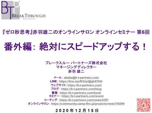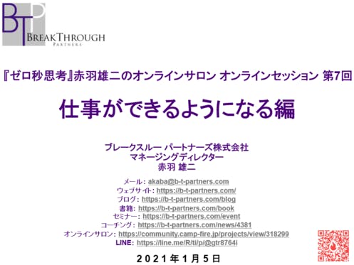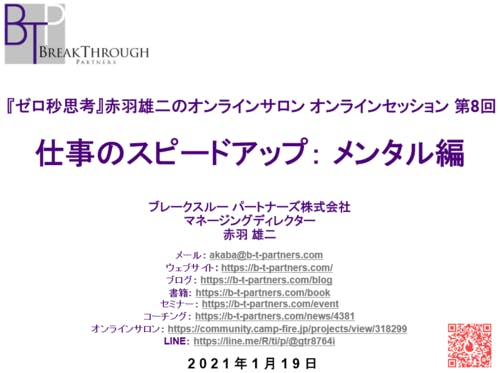 毎月第1,3火曜日20:00-21:00の「オンラインセミナー」ですが、12月からZOOMのセミナー形式をミーティング形式に切り替え、よりインタラクティブな運営を目指します。それにあわせ、今後は「オンラインセッション」と呼ぶことにします。今回は、「仕事ができるようになる」というテーマでお話しし...