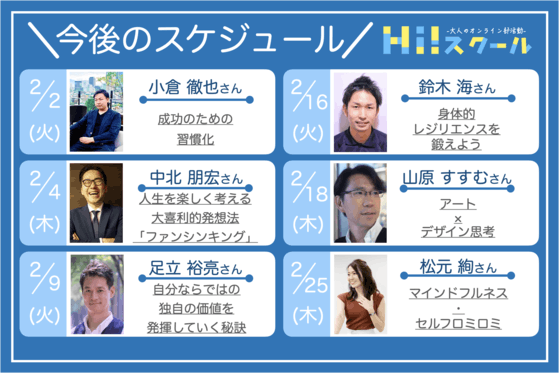 [!!!初月無料キャンペーン中!!!]コミュニティメンバーの皆様、こんにちは!春一番が吹いて、日中はかなり暖かくなりましたね!しかし!季節の変わり目なので、体調にお気をつけてお過ごしください!さて今回は今月のスケジュールについて共有させていただきます!今月も豪華な講師陣ばかりですね!!再度申し...
